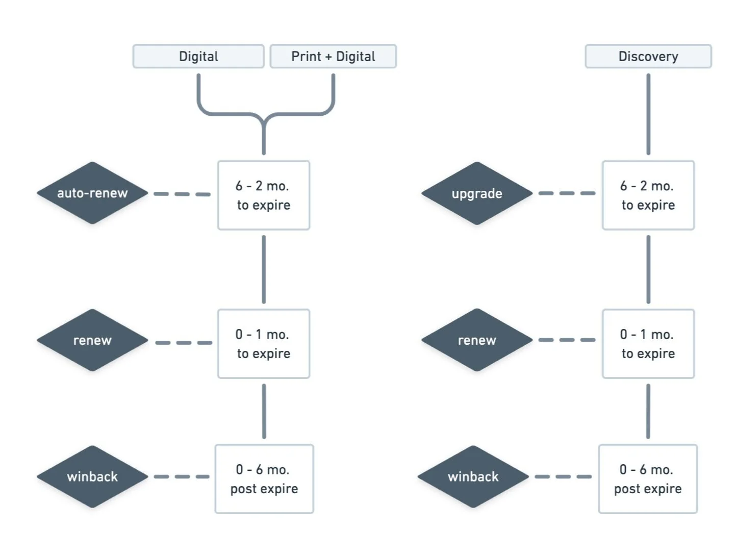 If a member does not renew their membership, they experience a hard paywall site-wide and have a unique page on which they can rejoin.