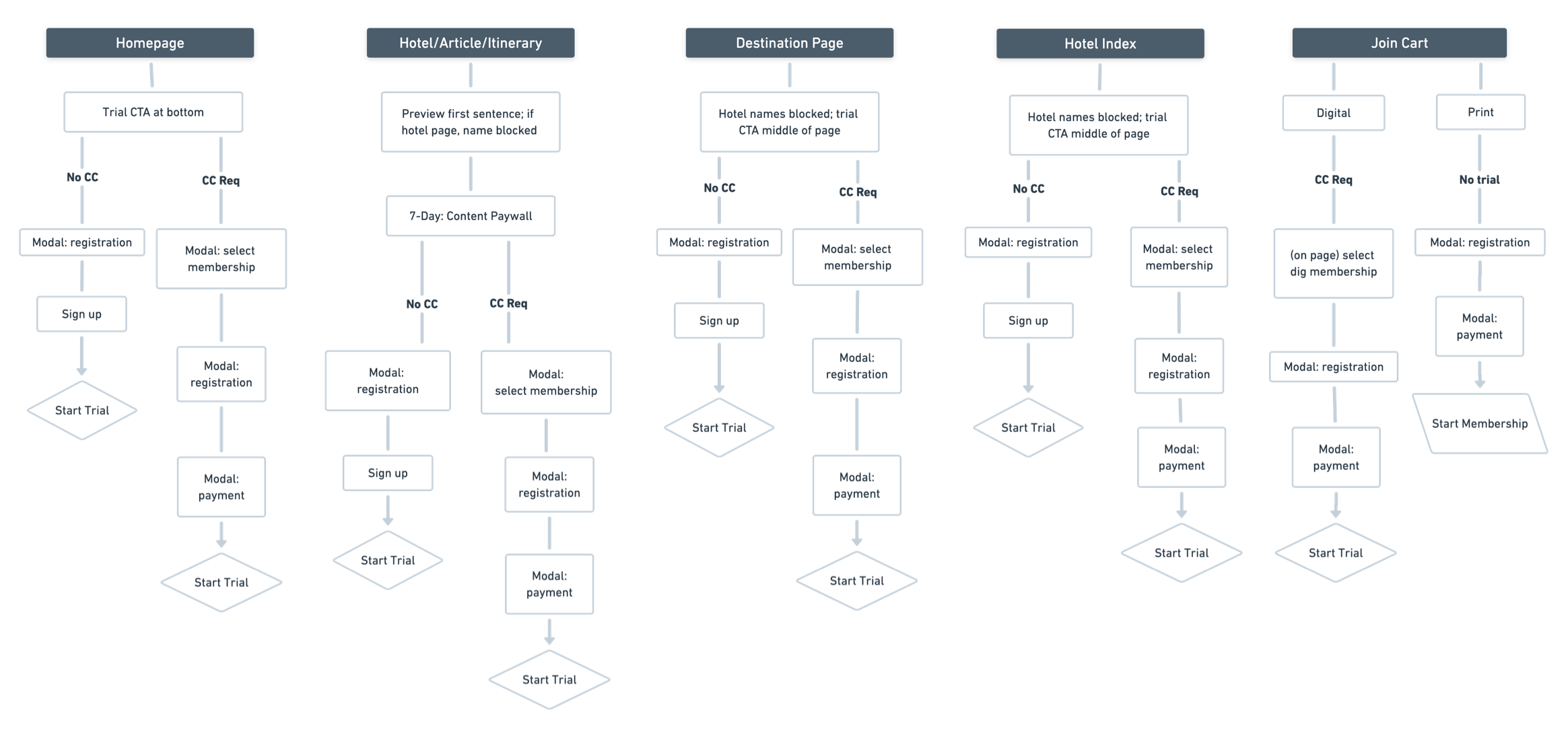 The split test ran for 60 days and the credit card required trial was determined to be the most effective for lead to member conversion. For users who signed up for a trial and didn't convert to membership, a hard paywall is in place prompting membership purchase.
