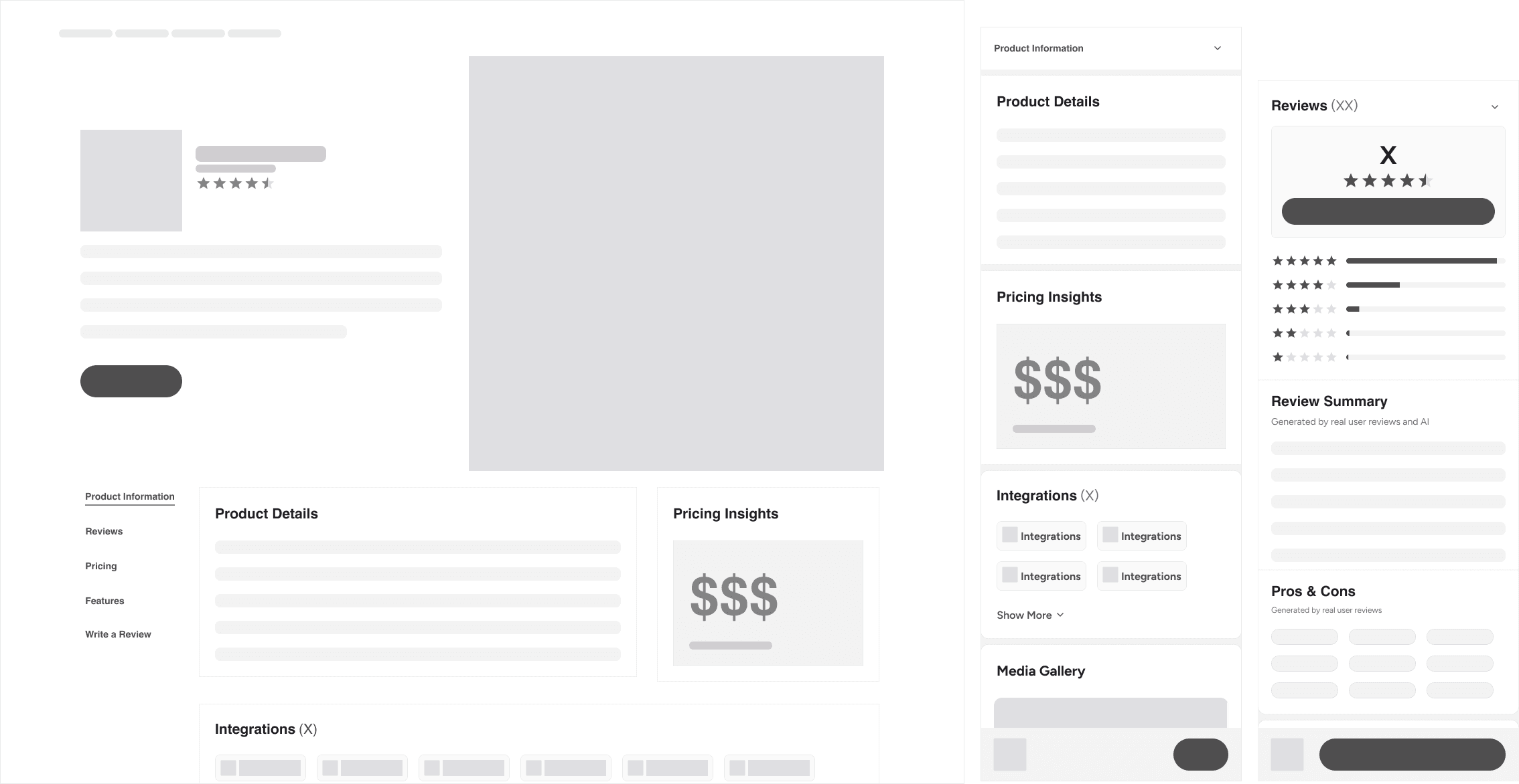 Key improvements: Conversion-driving elements are surfaced earlier, redundant content is removed, CTAs are clearer, review data is framed more effectively, and the mobile experience is smoother. Throughout the redesign, my team was building components in the design system to make applying this elsewhere much easier.